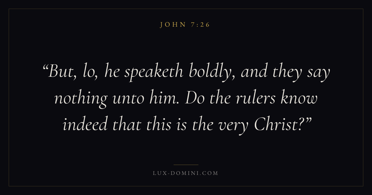 But, lo, he speaketh boldly, and they say nothing unto him. Do the rulers know indeed that this is the very Christ?