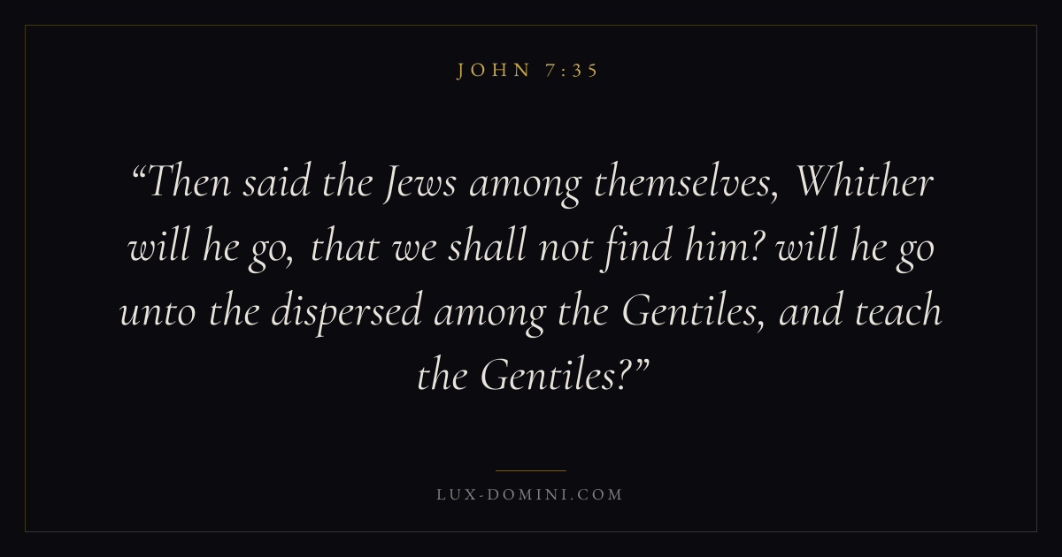 Then said the Jews among themselves, Whither will he go, that we shall not find him? will he go unto the dispersed among the Gentiles, and teach the Gentiles?