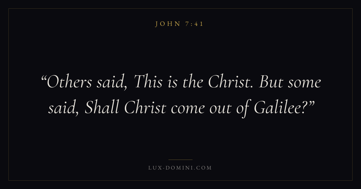 Others said, This is the Christ. But some said, Shall Christ come out of Galilee?