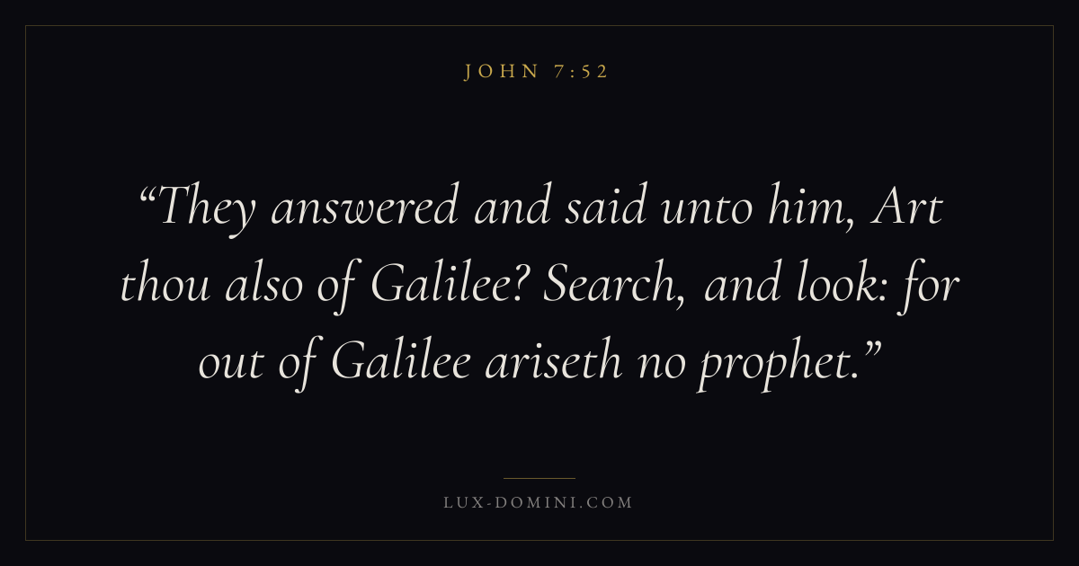 They answered and said unto him, Art thou also of Galilee? Search, and look: for out of Galilee ariseth no prophet.