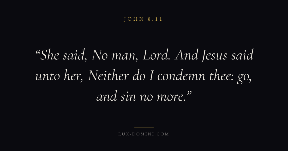 She said, No man, Lord. And Jesus said unto her, Neither do I condemn thee: go, and sin no more.