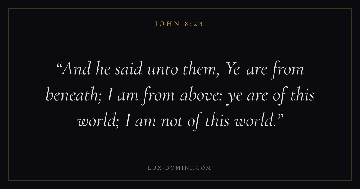 And he said unto them, Ye are from beneath; I am from above: ye are of this world; I am not of this world.