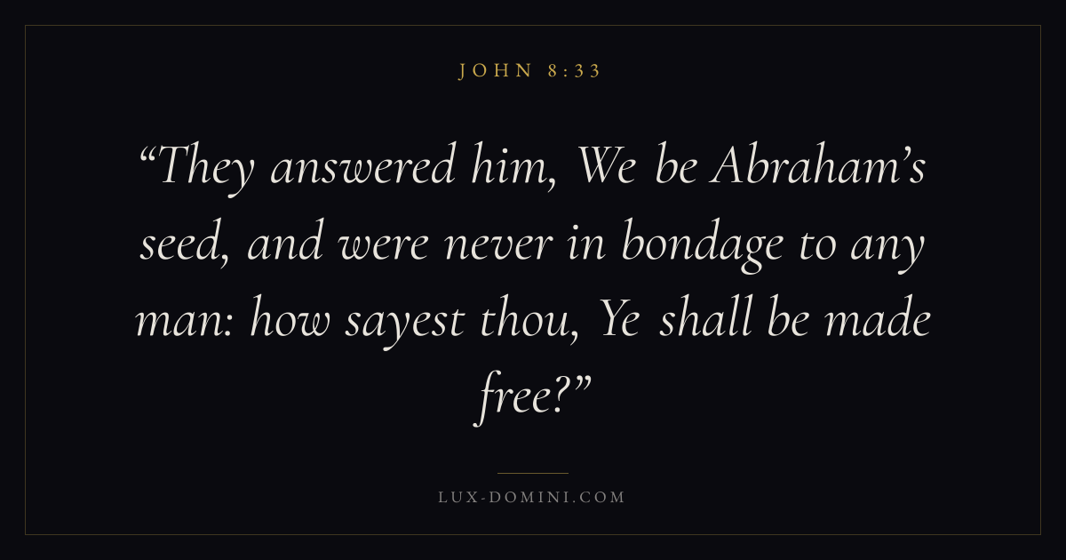 They answered him, We be Abraham’s seed, and were never in bondage to any man: how sayest thou, Ye shall be made free?