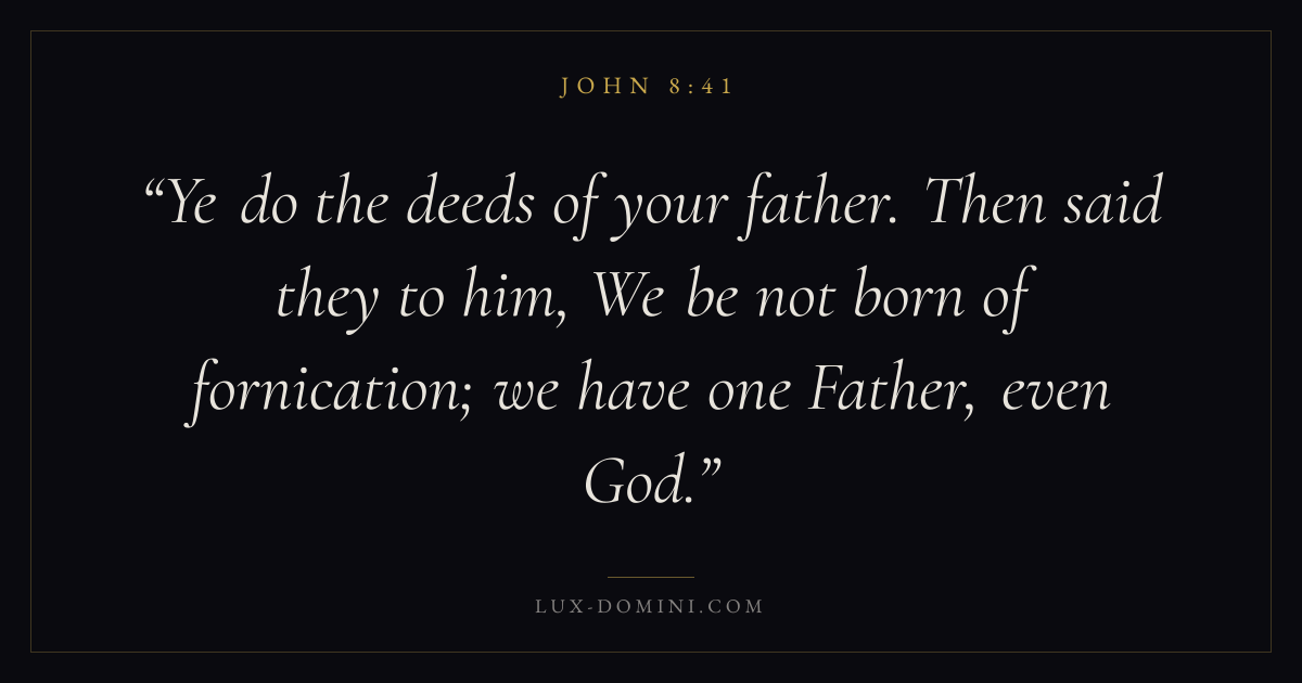 Ye do the deeds of your father. Then said they to him, We be not born of fornication; we have one Father, even God.