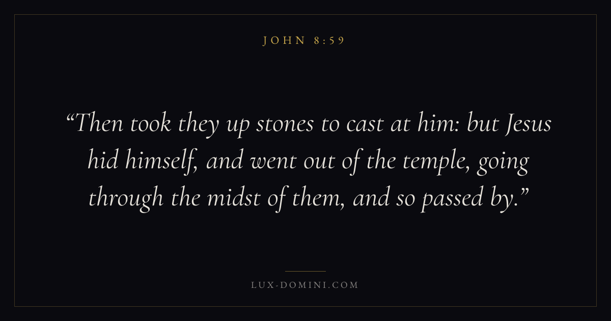 Then took they up stones to cast at him: but Jesus hid himself, and went out of the temple, going through the midst of them, and so passed by.