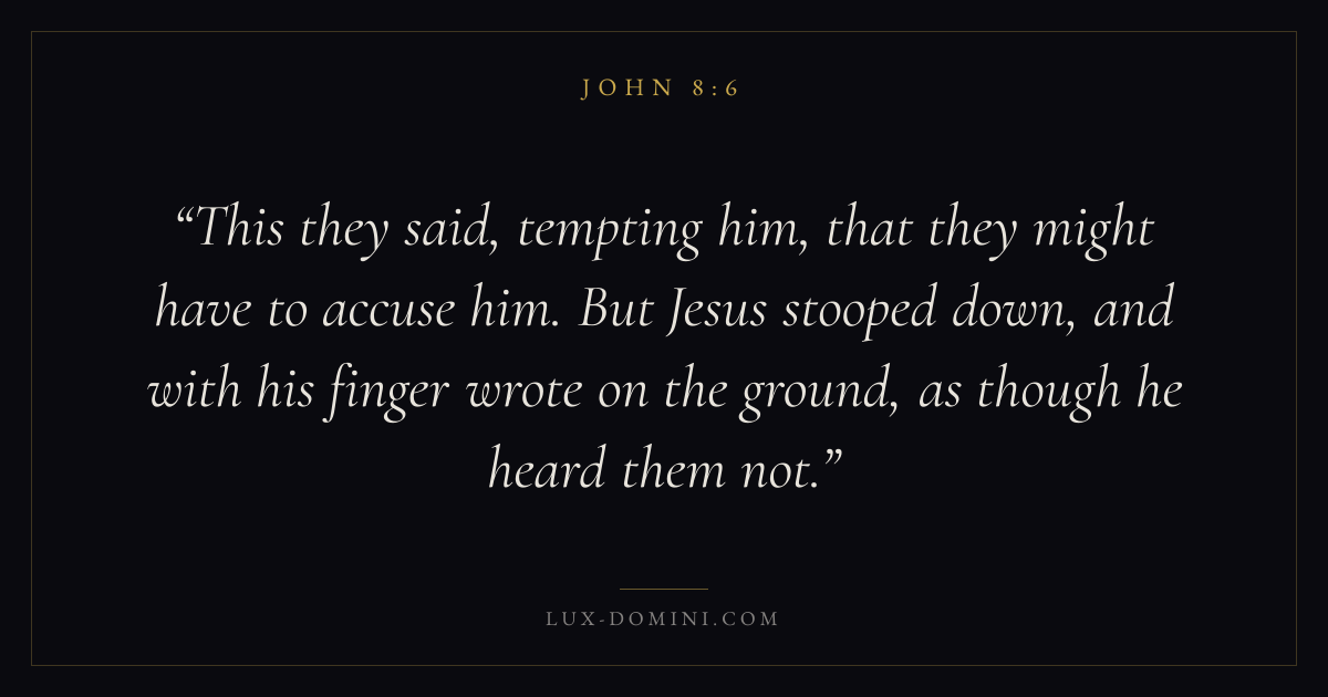 This they said, tempting him, that they might have to accuse him. But Jesus stooped down, and with his finger wrote on the ground, as though he heard them not.
