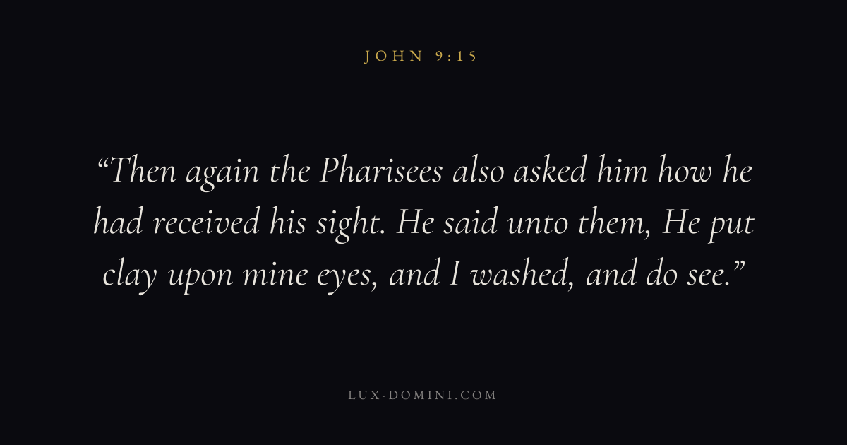 Then again the Pharisees also asked him how he had received his sight. He said unto them, He put clay upon mine eyes, and I washed, and do see.