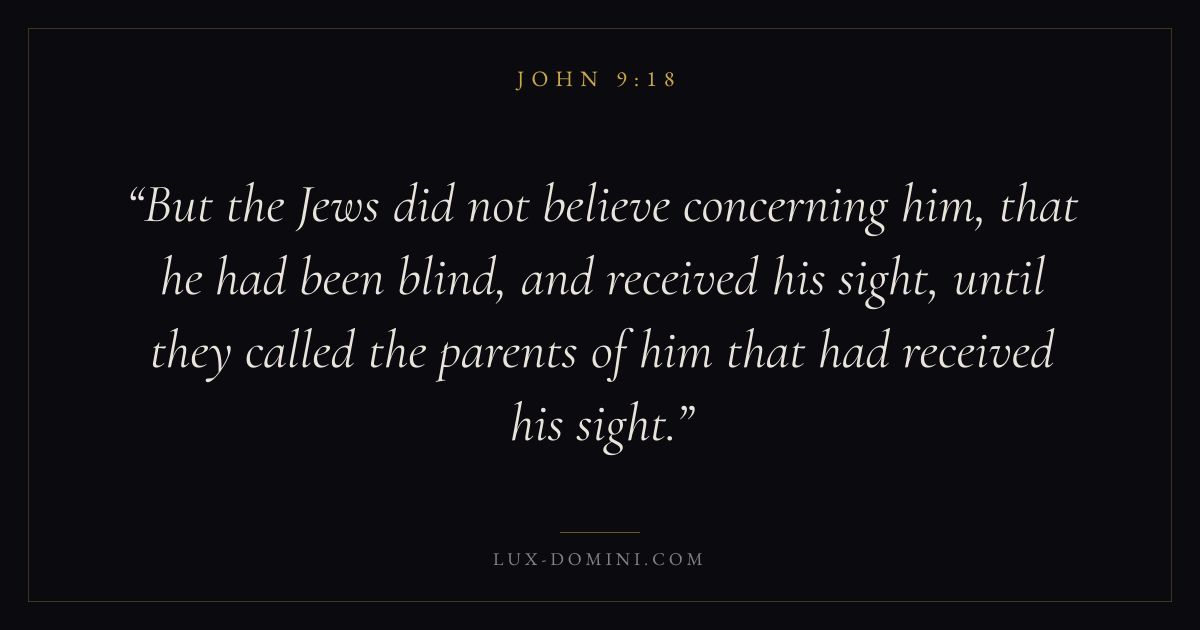 But the Jews did not believe concerning him, that he had been blind, and received his sight, until they called the parents of him that had received his sight.