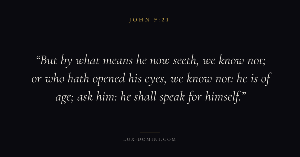 But by what means he now seeth, we know not; or who hath opened his eyes, we know not: he is of age; ask him: he shall speak for himself.