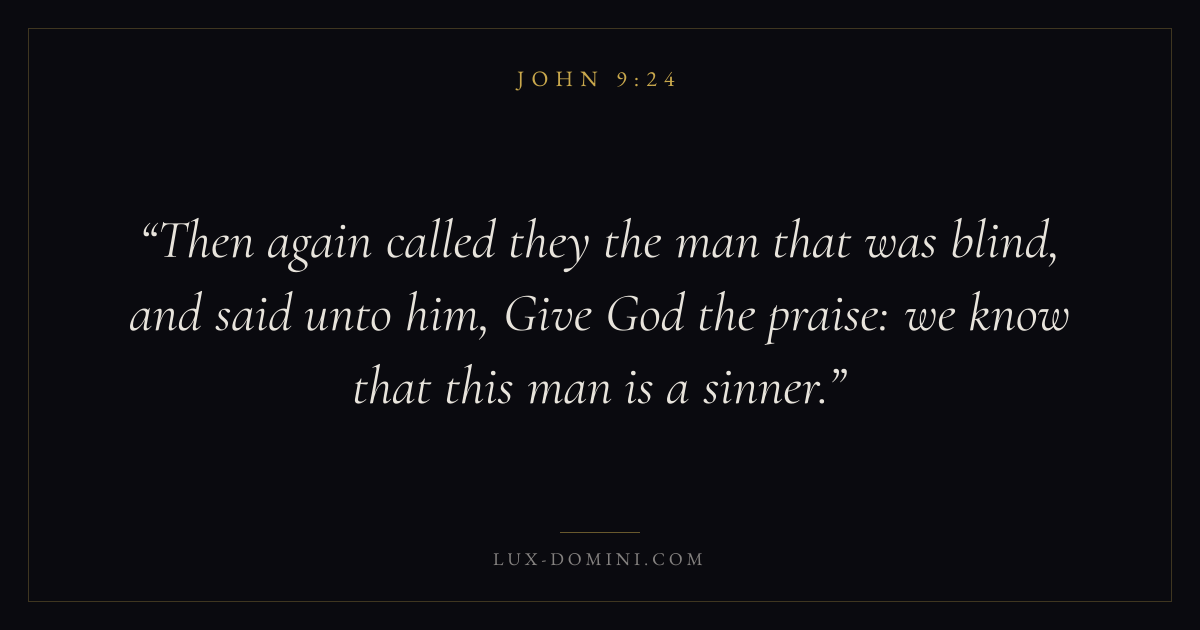 Then again called they the man that was blind, and said unto him, Give God the praise: we know that this man is a sinner.
