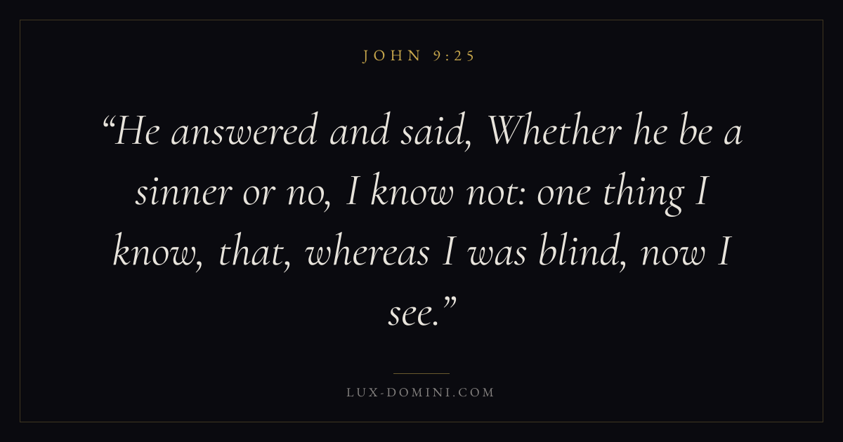 He answered and said, Whether he be a sinner or no, I know not: one thing I know, that, whereas I was blind, now I see.