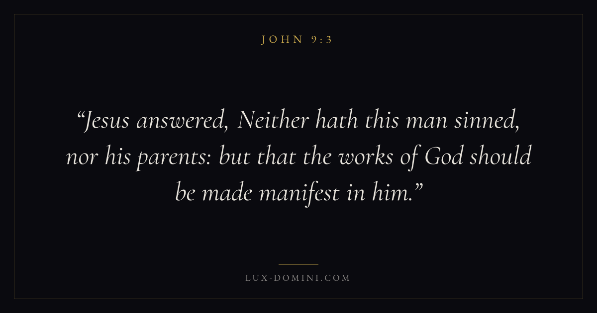 Jesus answered, Neither hath this man sinned, nor his parents: but that the works of God should be made manifest in him.