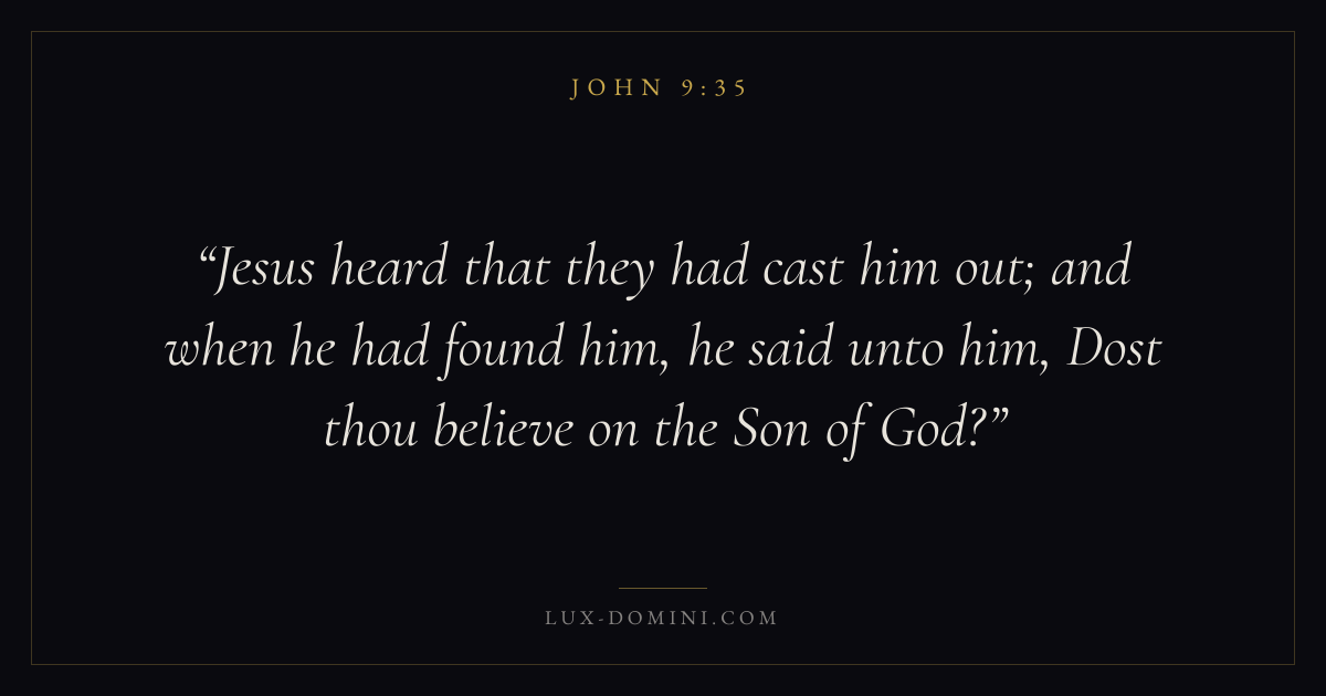 Jesus heard that they had cast him out; and when he had found him, he said unto him, Dost thou believe on the Son of God?