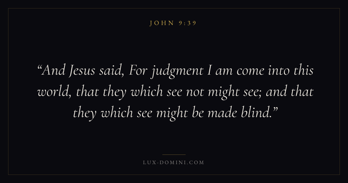 Christ came into the world to give sight to those who were spiritually blind. Also, that those who see might be made blind; that those who have a high conceit of their own wisdom, might be sealed up in ignorance.