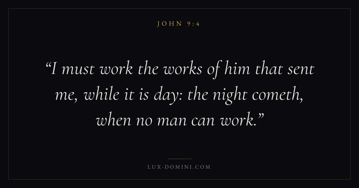 I must work the works of him that sent me, while it is day: the night cometh, when no man can work.