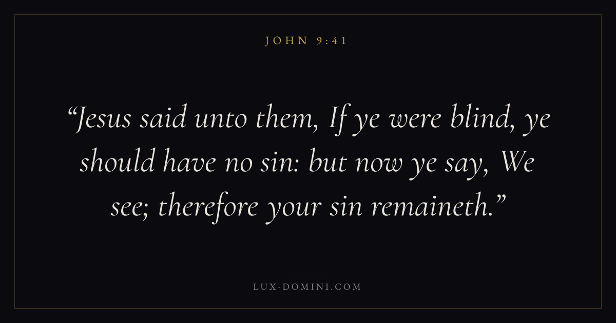 Jesus said unto them, If ye were blind, ye should have no sin: but now ye say, We see; therefore your sin remaineth.