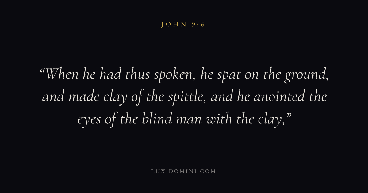 When he had thus spoken, he spat on the ground, and made clay of the spittle, and he anointed the eyes of the blind man with the clay,
