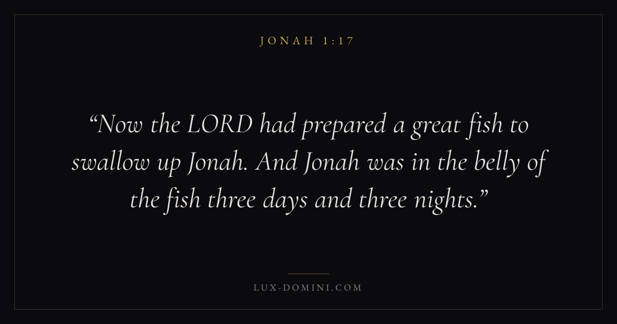 Now the LORD had prepared a great fish to swallow up Jonah. And Jonah was in the belly of the fish three days and three nights.