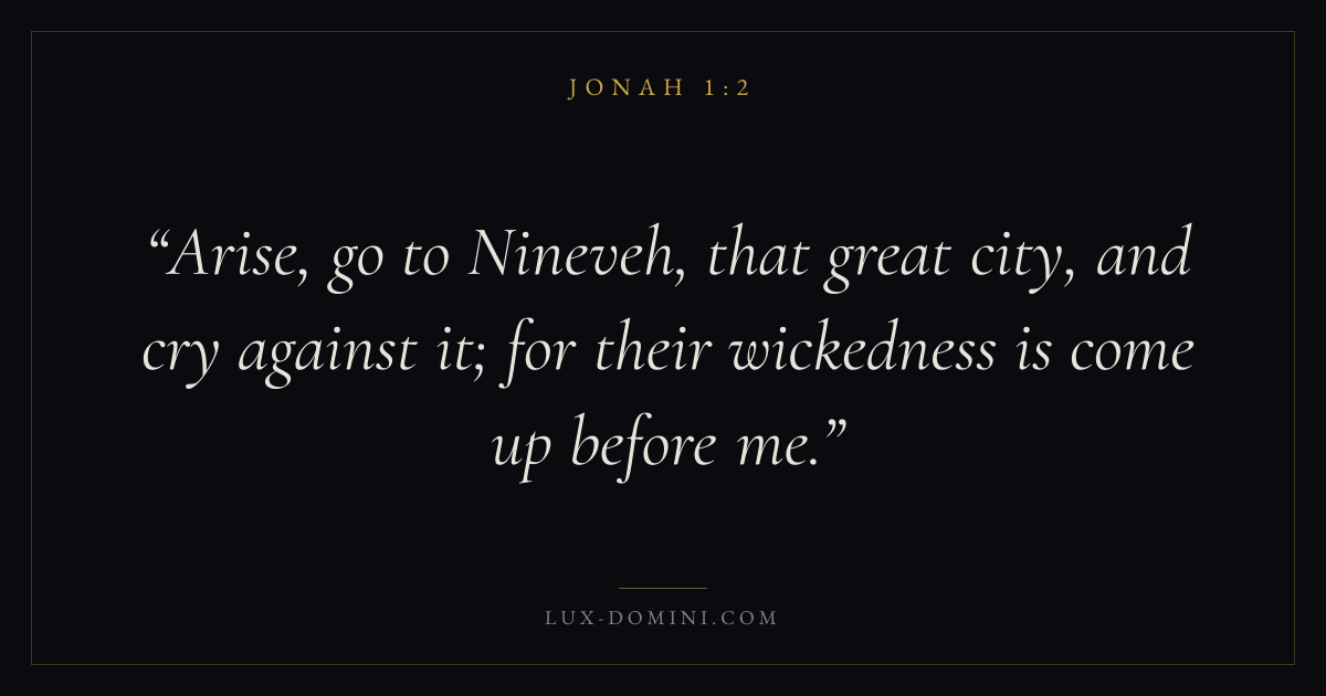Arise, go to Nineveh, that great city, and cry against it; for their wickedness is come up before me.