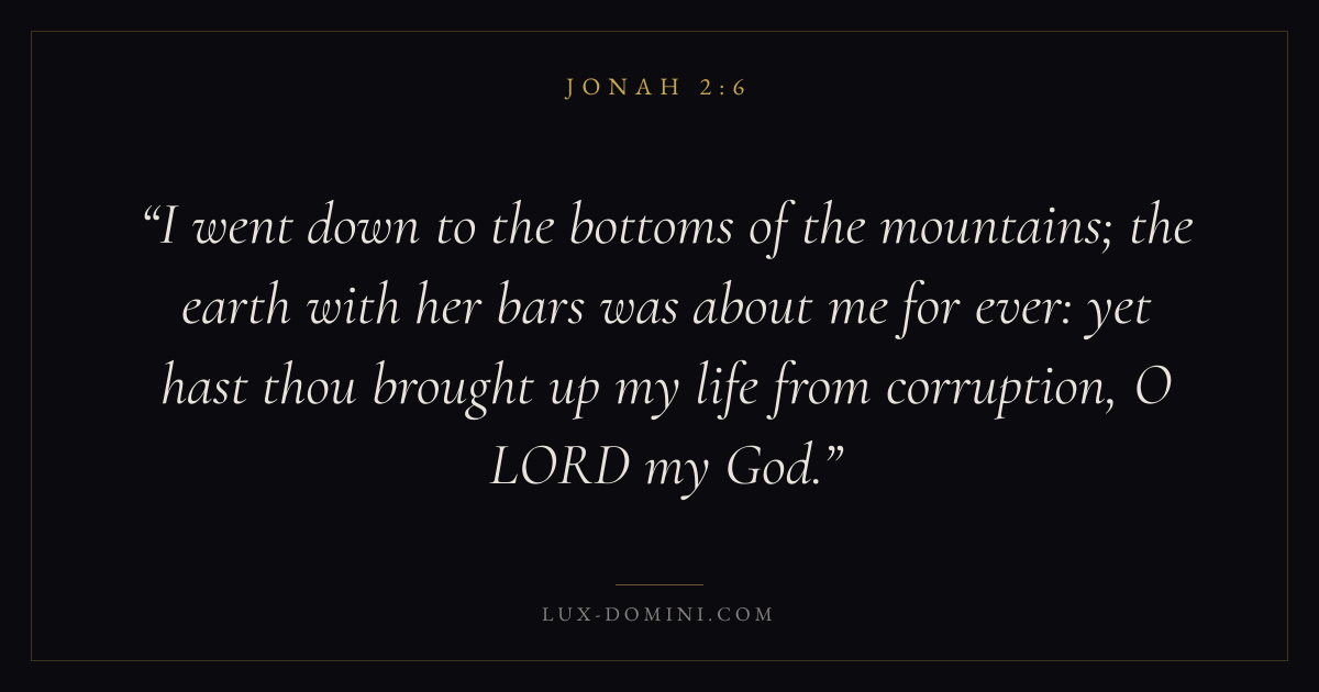 I went down to the bottoms of the mountains; the earth with her bars was about me for ever: yet hast thou brought up my life from corruption, O LORD my God.