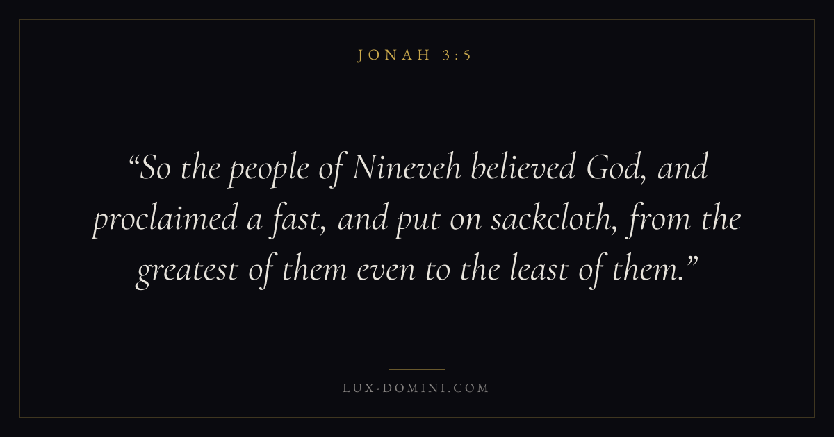 So the people of Nineveh believed God, and proclaimed a fast, and put on sackcloth, from the greatest of them even to the least of them.