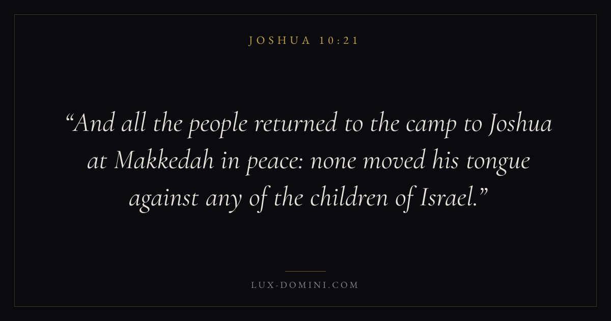 And all the people returned to the camp to Joshua at Makkedah in peace: none moved his tongue against any of the children of Israel.
