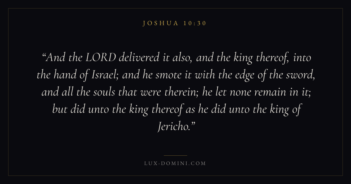 And the LORD delivered it also, and the king thereof, into the hand of Israel; and he smote it with the edge of the sword, and all the souls that were therein; he let none remain in it; but did unto the king thereof as he did unto the king of Jericho.