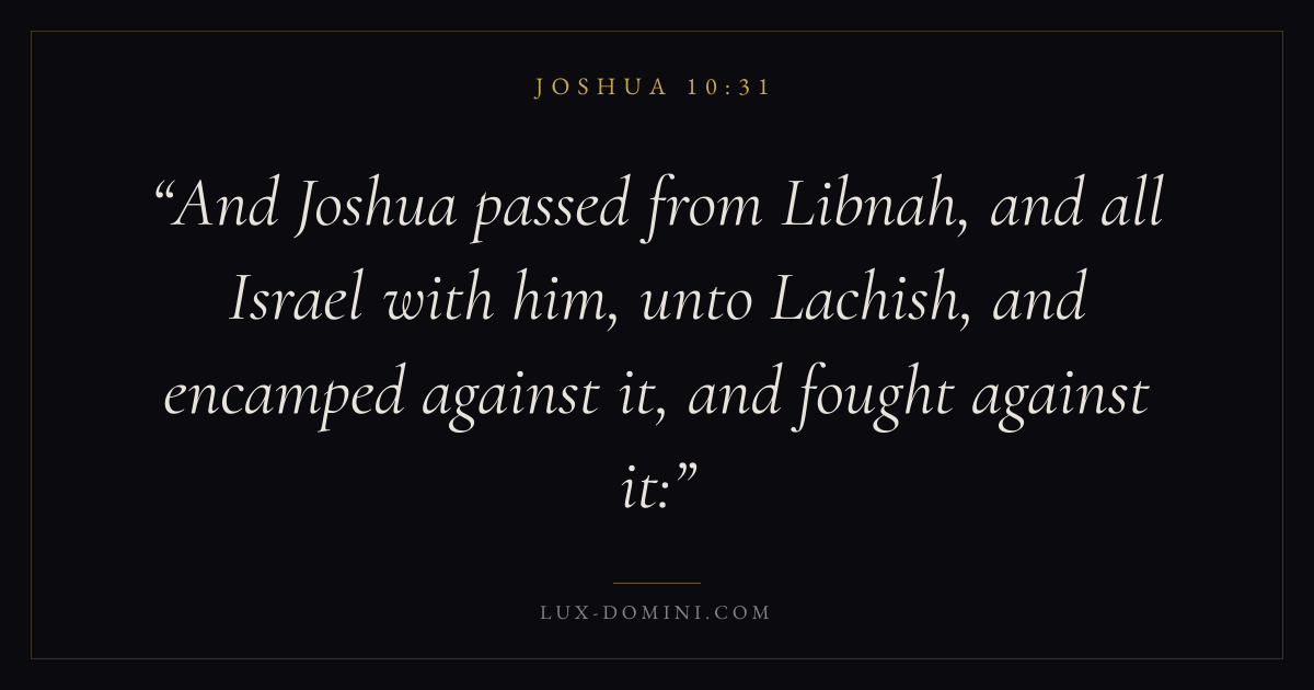 And Joshua passed from Libnah, and all Israel with him, unto Lachish, and encamped against it, and fought against it: