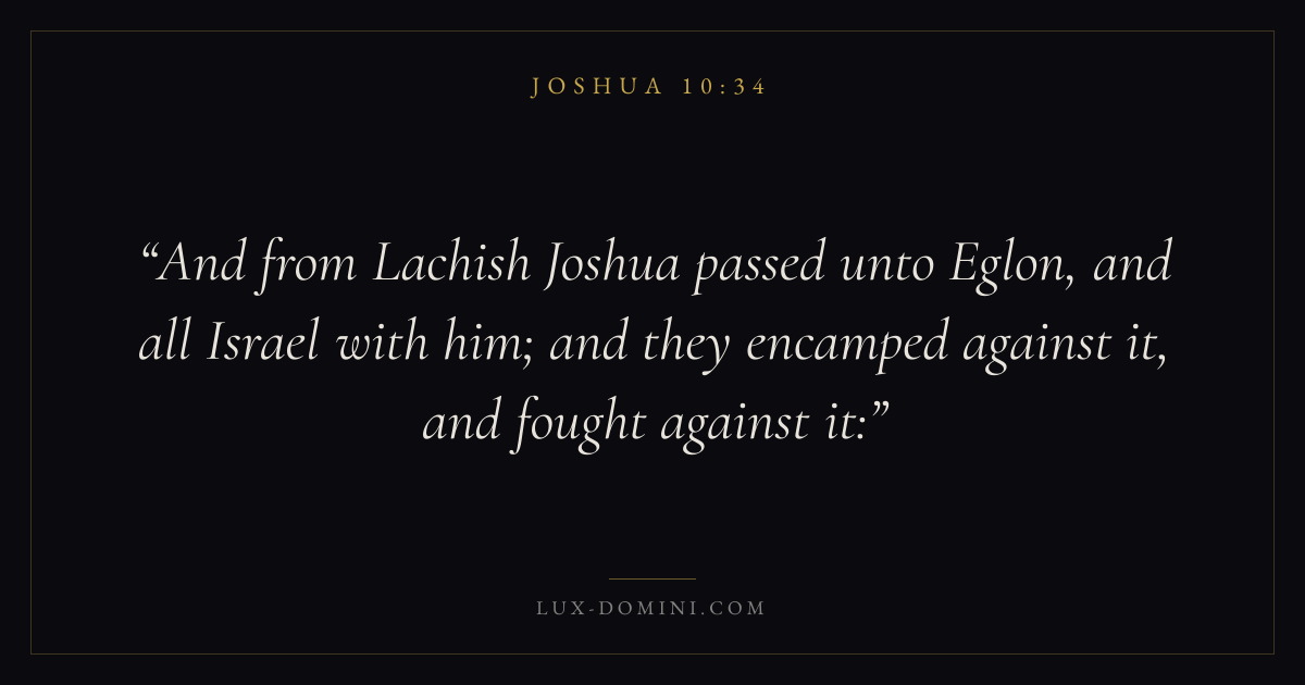 And from Lachish Joshua passed unto Eglon, and all Israel with him; and they encamped against it, and fought against it:
