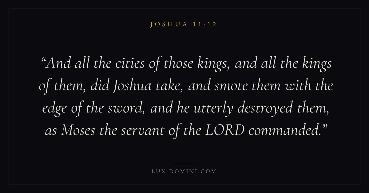 And all the cities of those kings, and all the kings of them, did Joshua take, and smote them with the edge of the sword, and he utterly destroyed them, as Moses the servant of the LORD commanded.