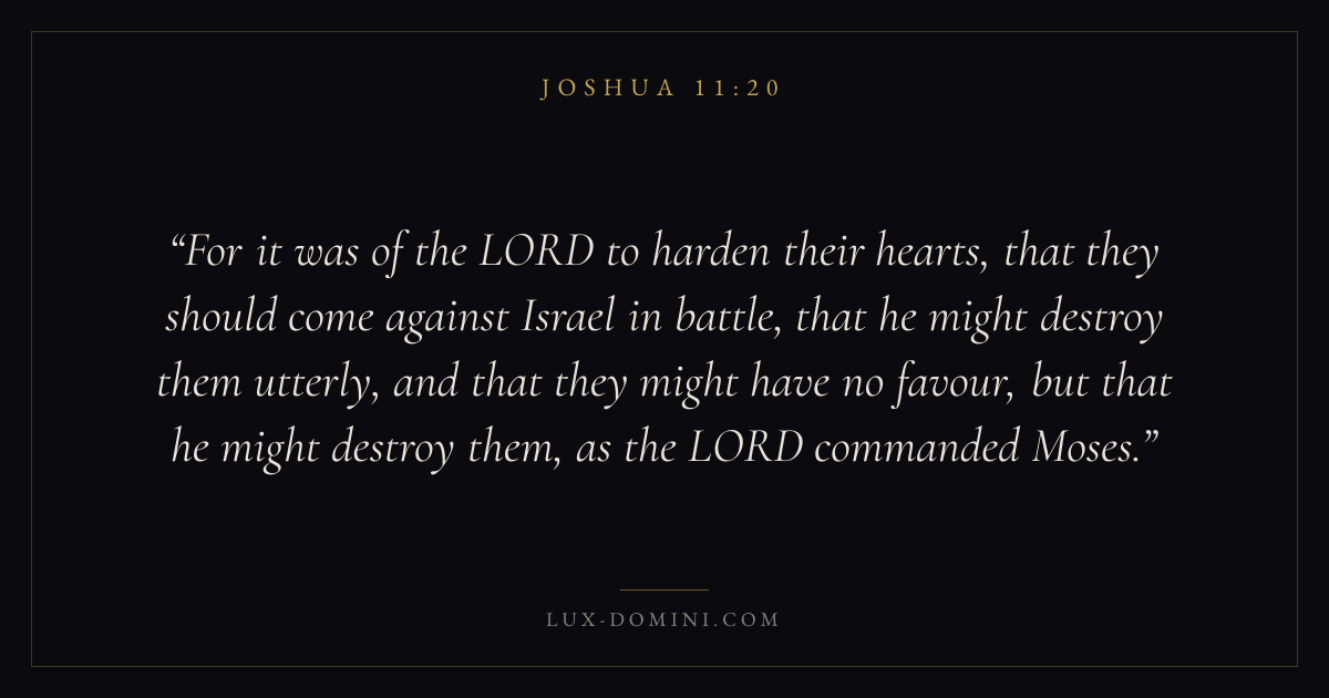 For it was of the LORD to harden their hearts, that they should come against Israel in battle, that he might destroy them utterly, and that they might have no favour, but that he might destroy them, as the LORD commanded Moses.