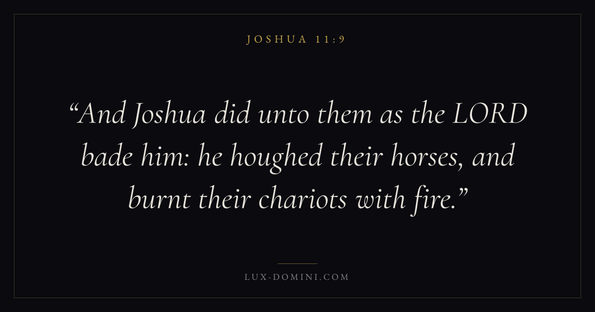 And Joshua did unto them as the LORD bade him: he houghed their horses, and burnt their chariots with fire.