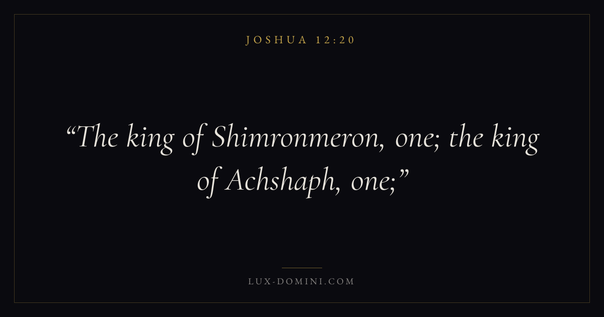 The king of Shimronmeron, one; the king of Achshaph, one;