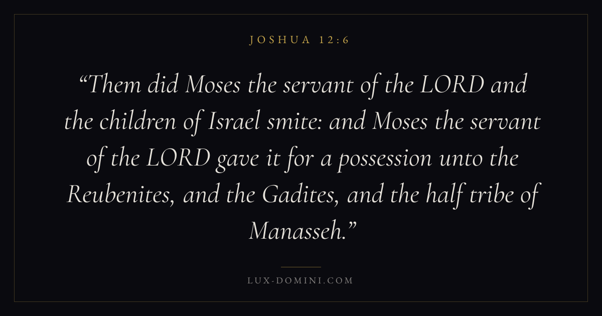 Them did Moses the servant of the LORD and the children of Israel smite: and Moses the servant of the LORD gave it for a possession unto the Reubenites, and the Gadites, and the half tribe of Manasseh.