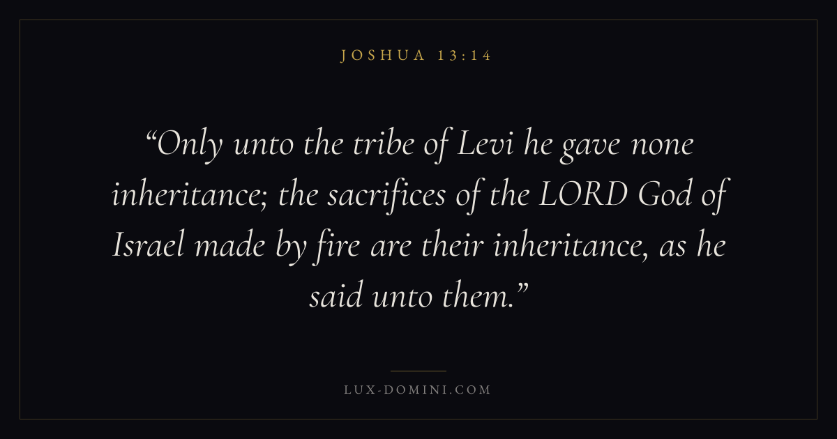 Only unto the tribe of Levi he gave none inheritance; the sacrifices of the LORD God of Israel made by fire are their inheritance, as he said unto them.