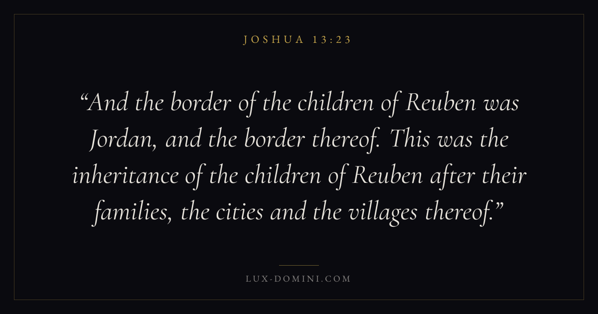 And the border of the children of Reuben was Jordan, and the border thereof. This was the inheritance of the children of Reuben after their families, the cities and the villages thereof.