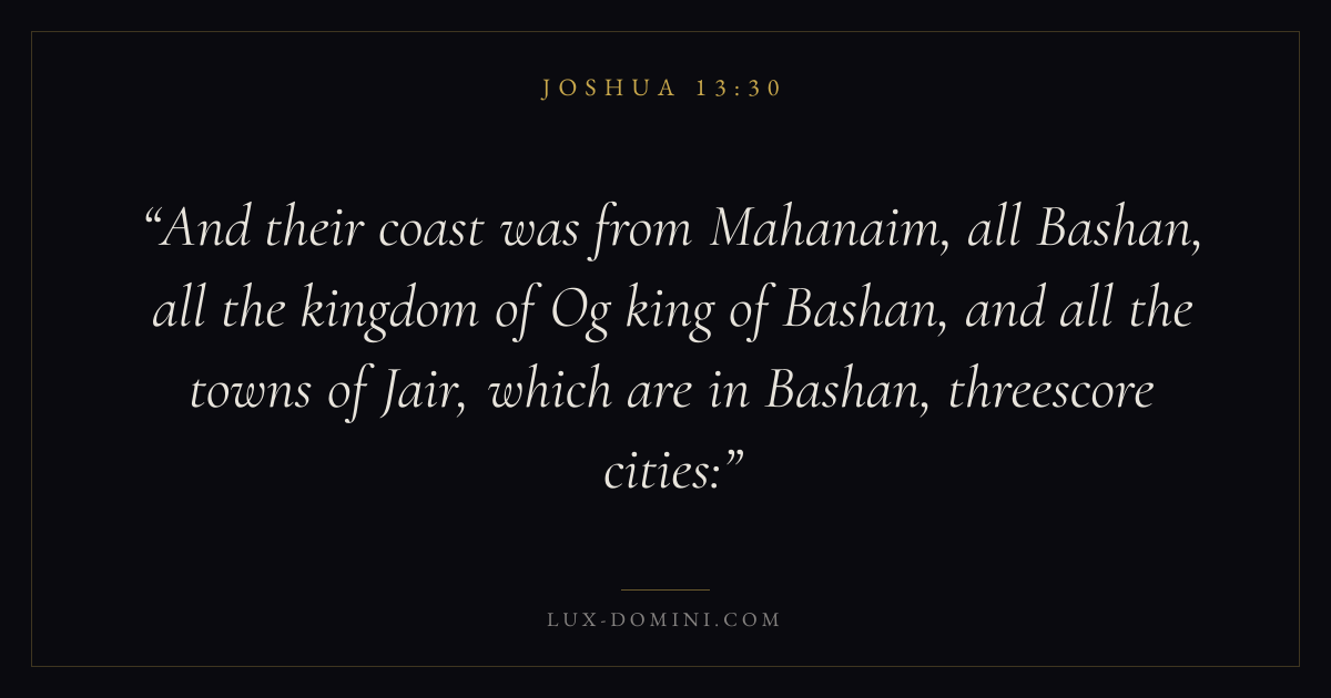 And their coast was from Mahanaim, all Bashan, all the kingdom of Og king of Bashan, and all the towns of Jair, which are in Bashan, threescore cities: