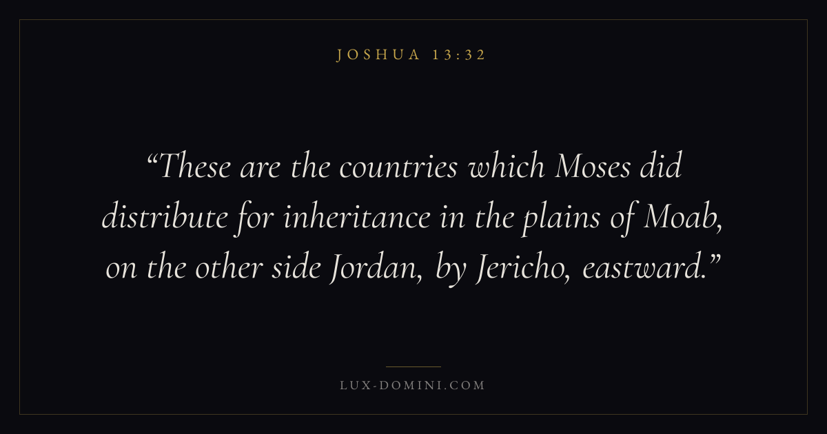 These are the countries which Moses did distribute for inheritance in the plains of Moab, on the other side Jordan, by Jericho, eastward.