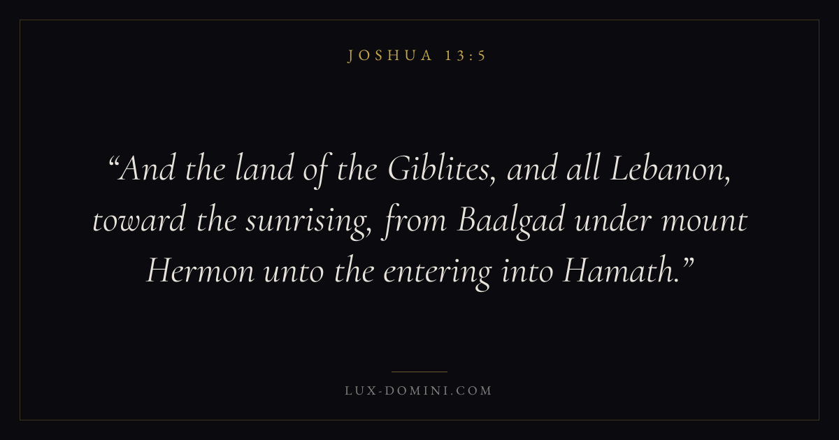 And the land of the Giblites, and all Lebanon, toward the sunrising, from Baalgad under mount Hermon unto the entering into Hamath.