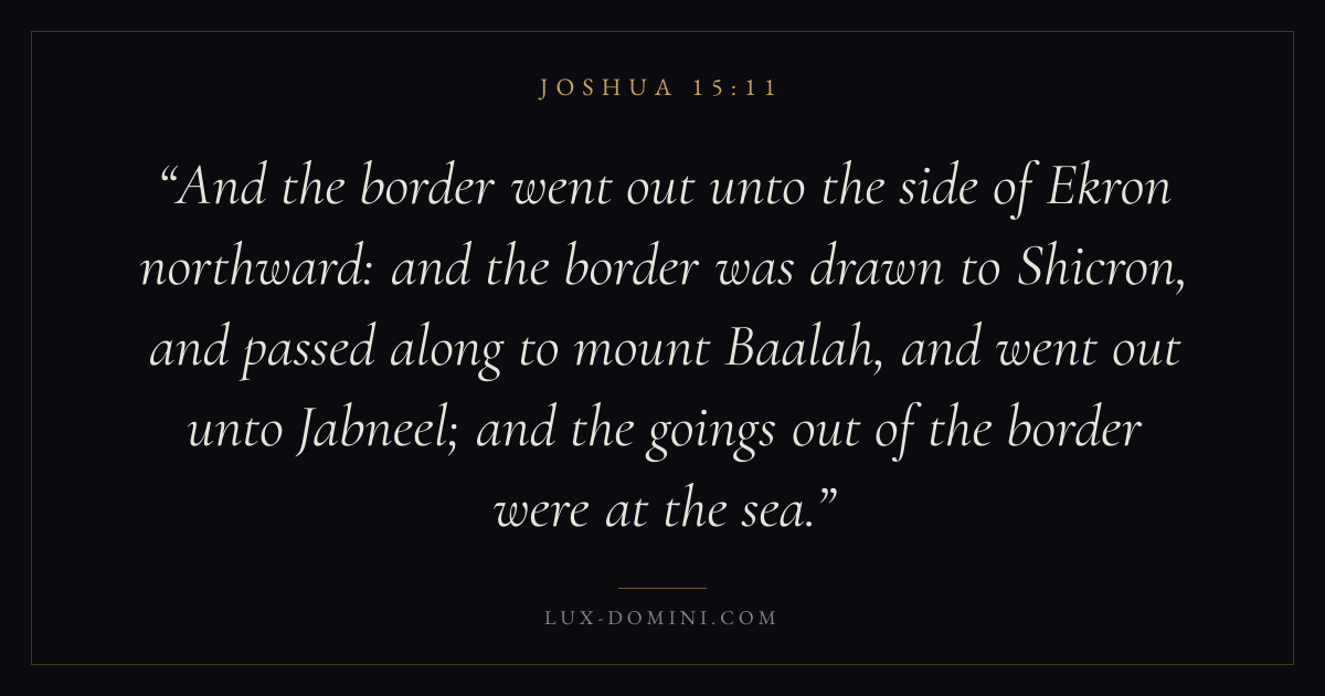 And the border went out unto the side of Ekron northward: and the border was drawn to Shicron, and passed along to mount Baalah, and went out unto Jabneel; and the goings out of the border were at the sea.
