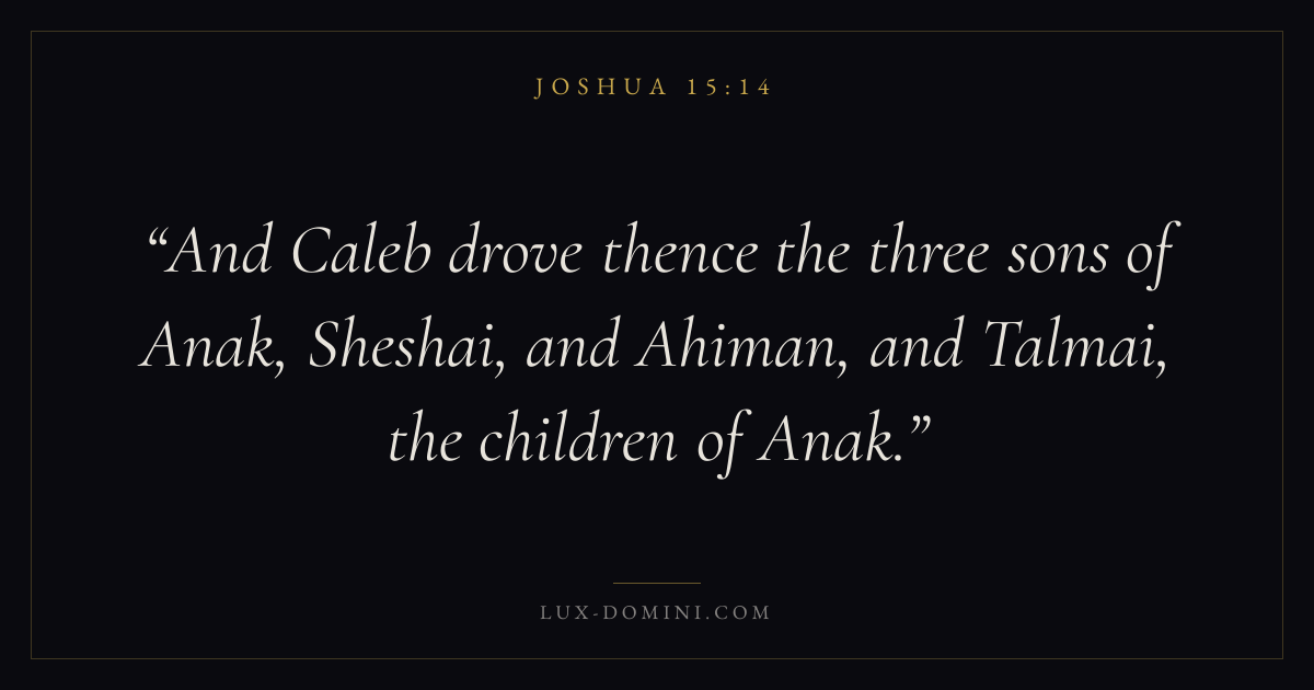 And Caleb drove thence the three sons of Anak, Sheshai, and Ahiman, and Talmai, the children of Anak.