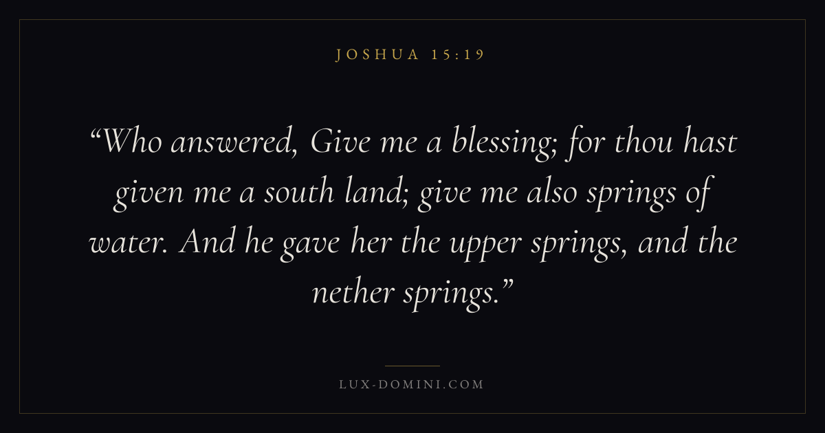 Who answered, Give me a blessing; for thou hast given me a south land; give me also springs of water. And he gave her the upper springs, and the nether springs.