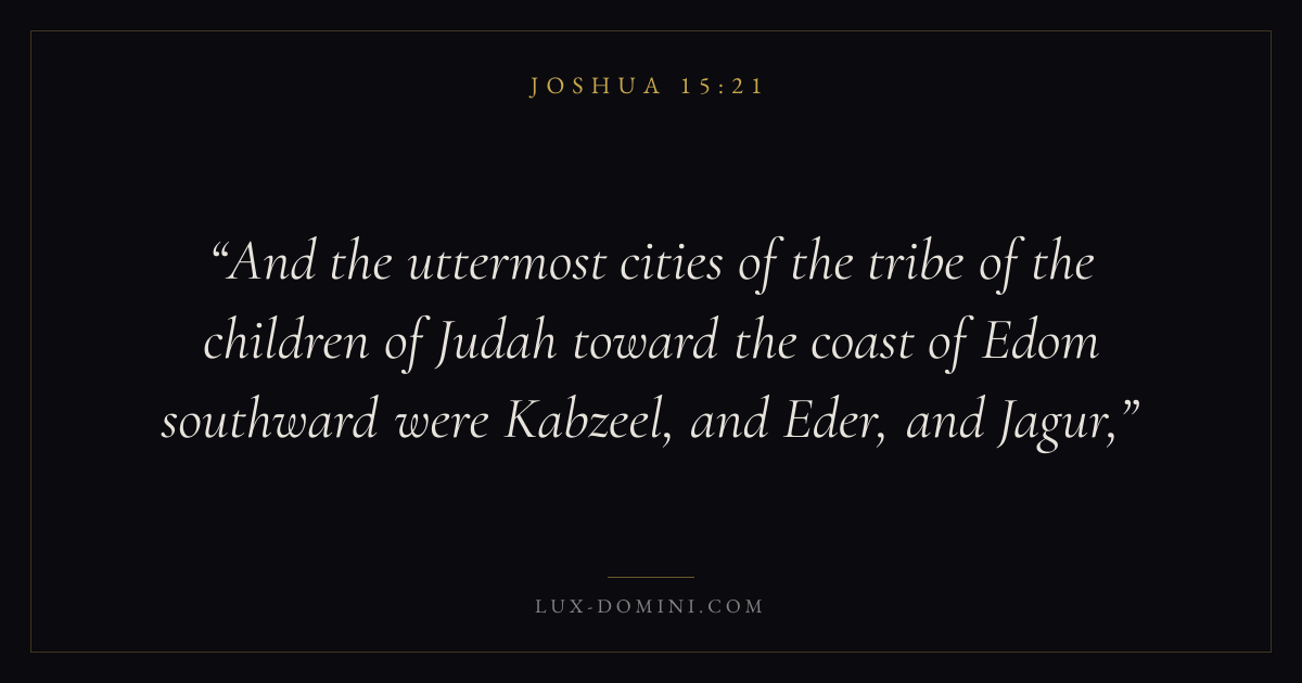 And the uttermost cities of the tribe of the children of Judah toward the coast of Edom southward were Kabzeel, and Eder, and Jagur,
