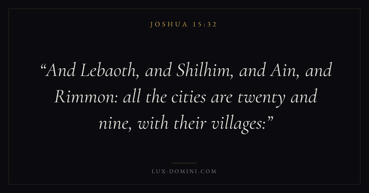 And Lebaoth, and Shilhim, and Ain, and Rimmon: all the cities are twenty and nine, with their villages: