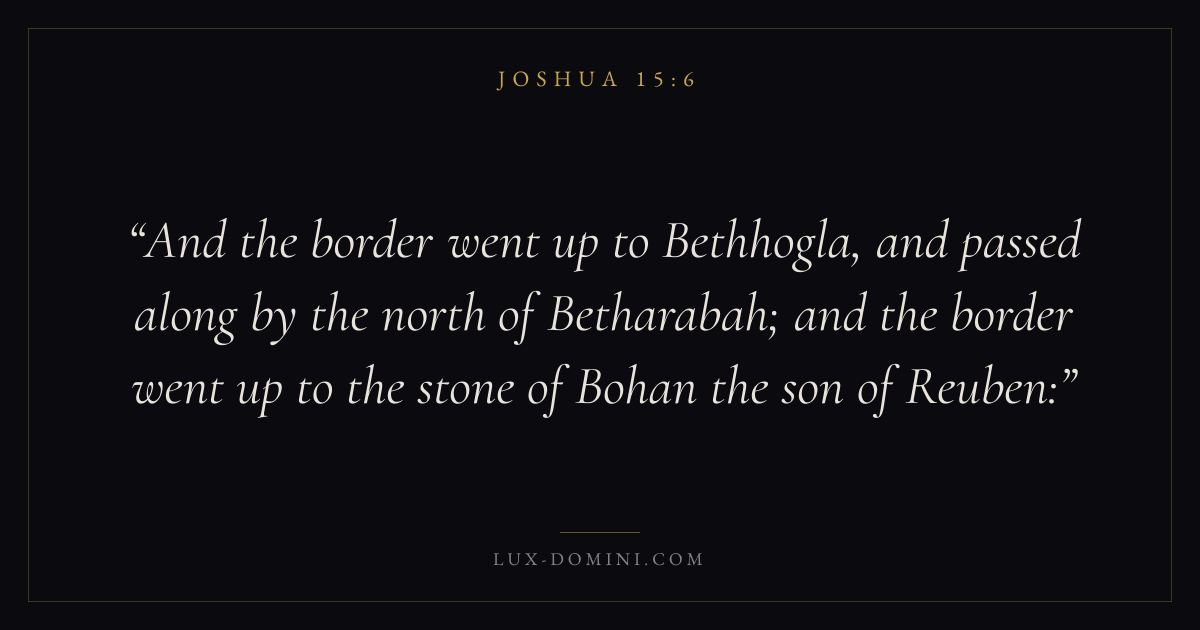 And the border went up to Bethhogla, and passed along by the north of Betharabah; and the border went up to the stone of Bohan the son of Reuben:
