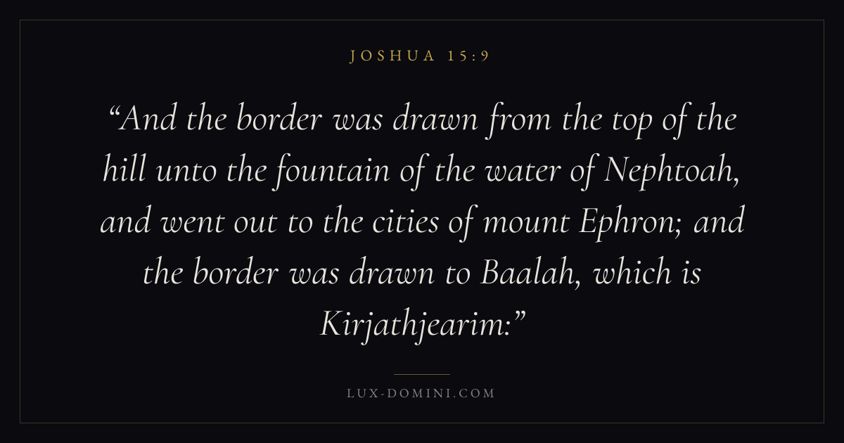And the border was drawn from the top of the hill unto the fountain of the water of Nephtoah, and went out to the cities of mount Ephron; and the border was drawn to Baalah, which is Kirjathjearim:
