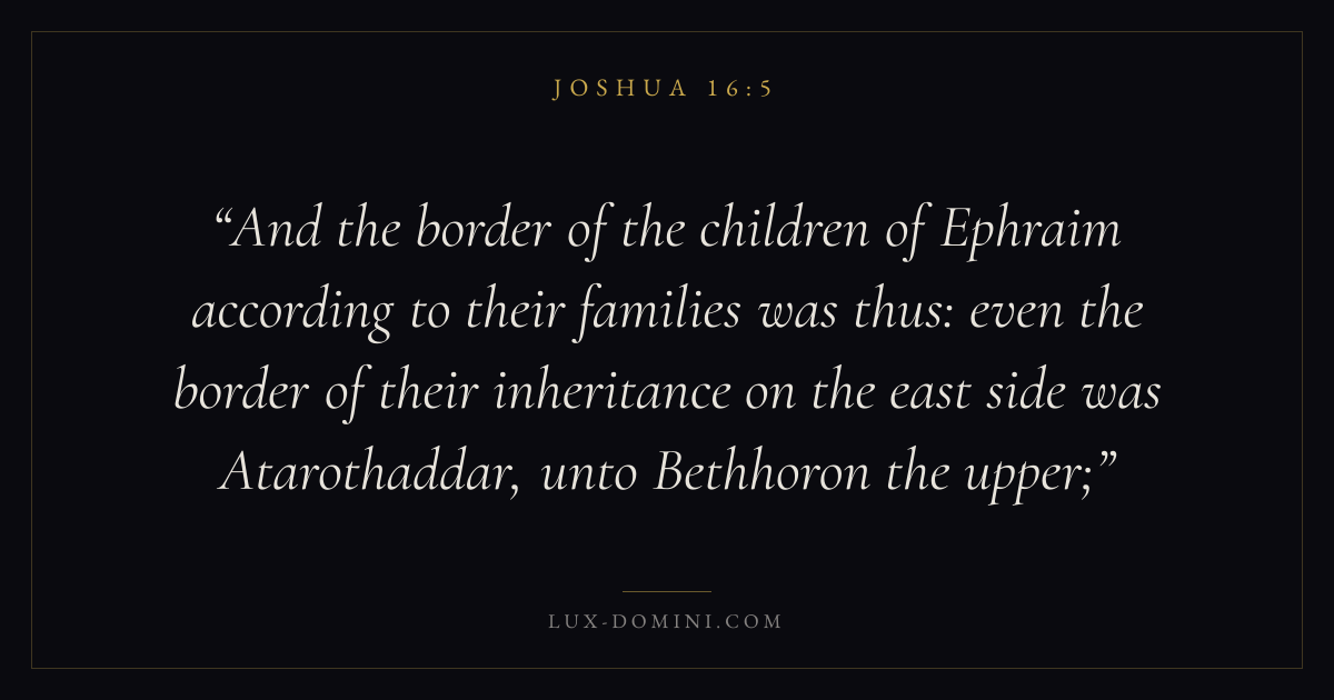 And the border of the children of Ephraim according to their families was thus: even the border of their inheritance on the east side was Atarothaddar, unto Bethhoron the upper;