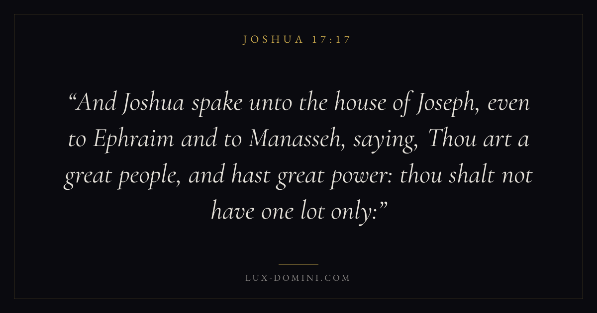 And Joshua spake unto the house of Joseph, even to Ephraim and to Manasseh, saying, Thou art a great people, and hast great power: thou shalt not have one lot only:
