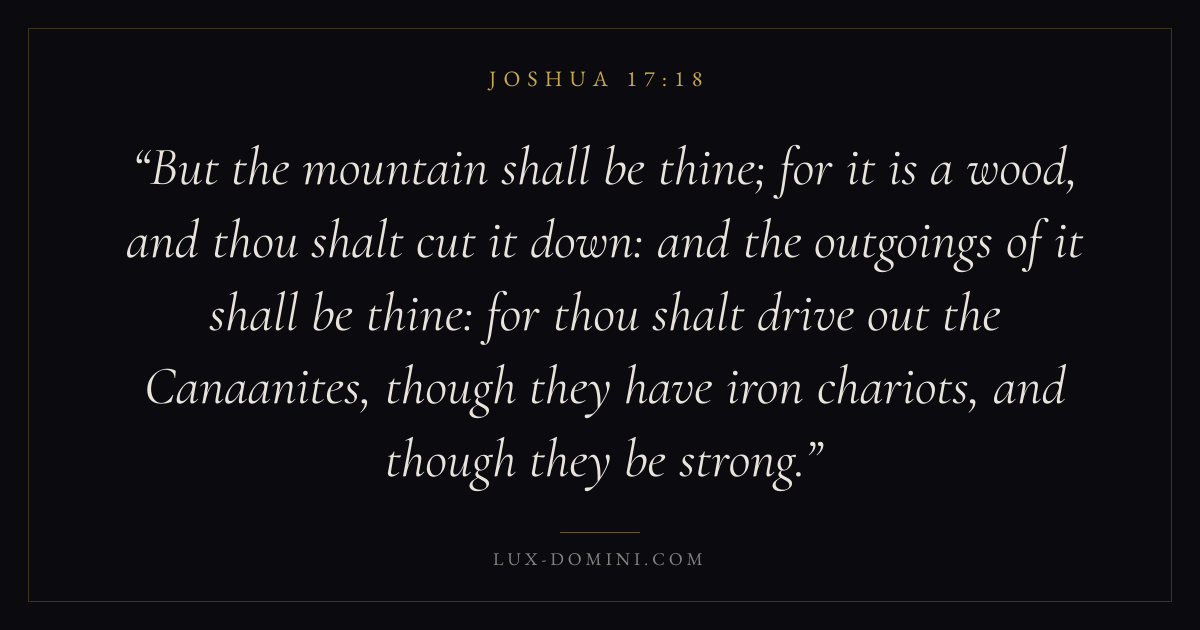 But the mountain shall be thine; for it is a wood, and thou shalt cut it down: and the outgoings of it shall be thine: for thou shalt drive out the Canaanites, though they have iron chariots, and though they be strong.