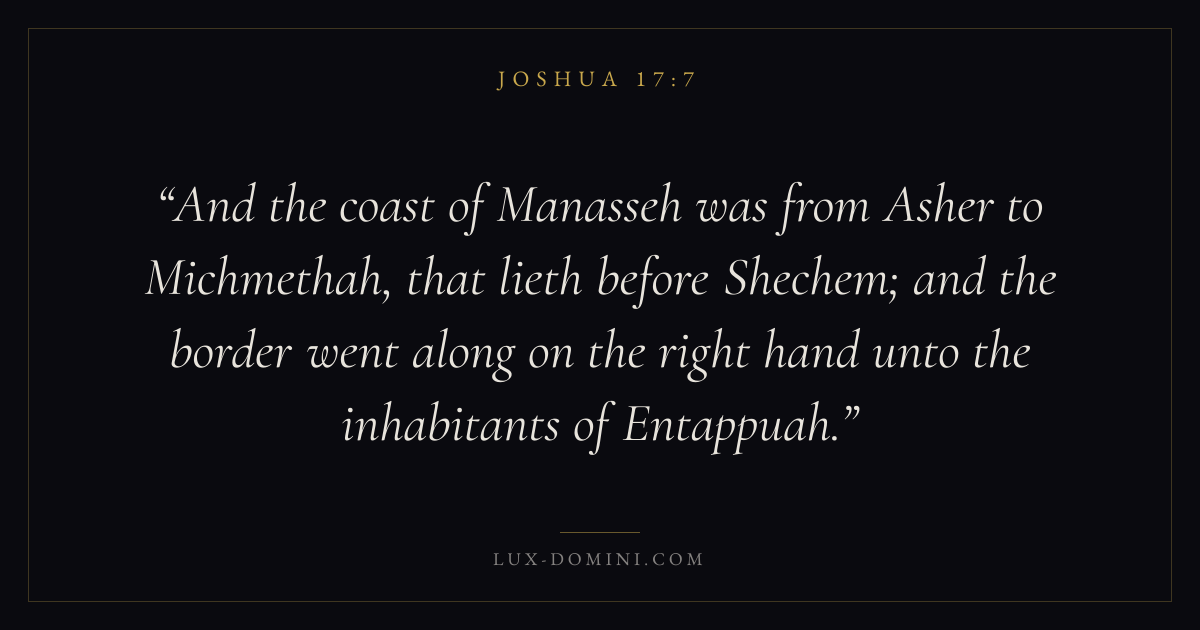 And the coast of Manasseh was from Asher to Michmethah, that lieth before Shechem; and the border went along on the right hand unto the inhabitants of Entappuah.